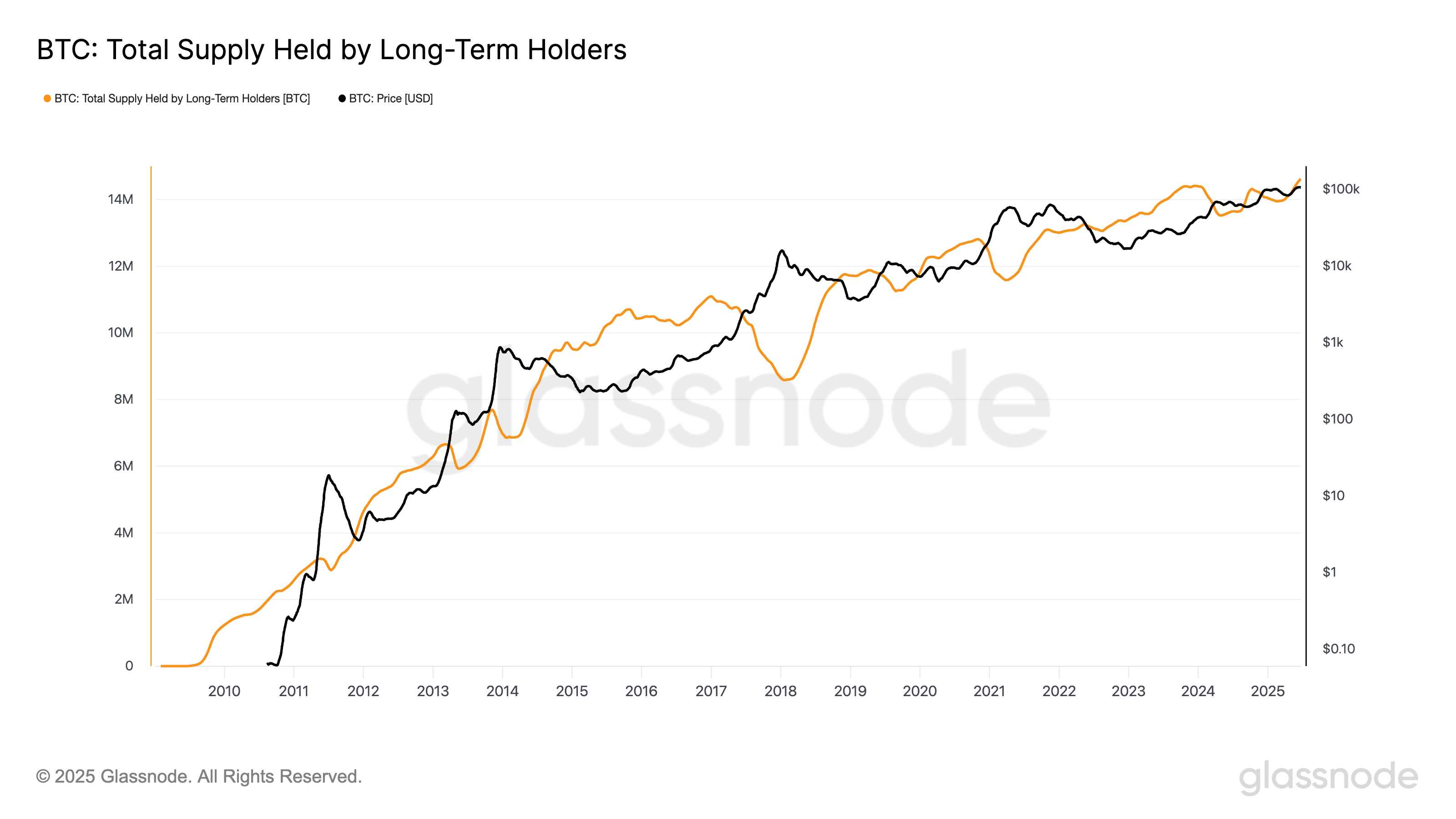 Bitcoin supply held by long-term holders. Source: Glassnode
