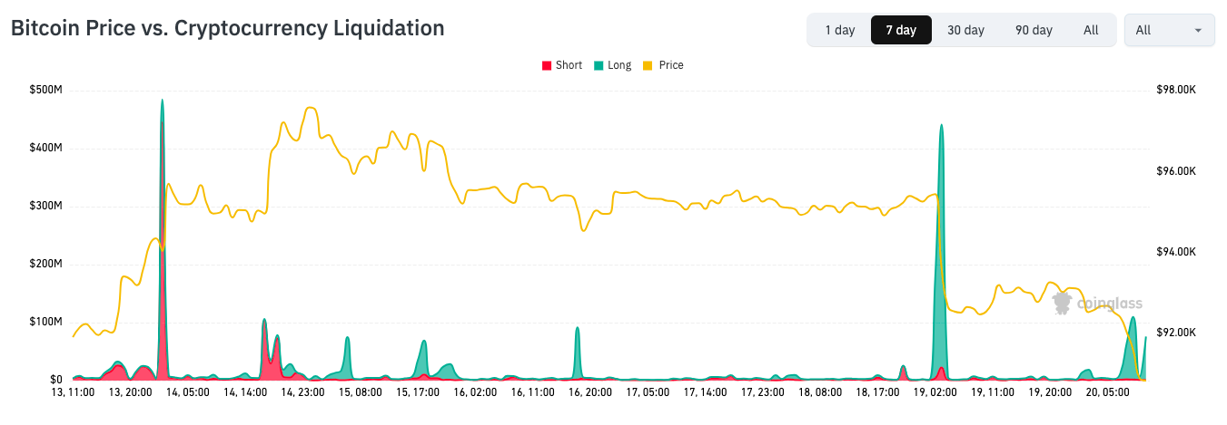 BTC price vs. liquidations (screenshot). Source: CoinGlass