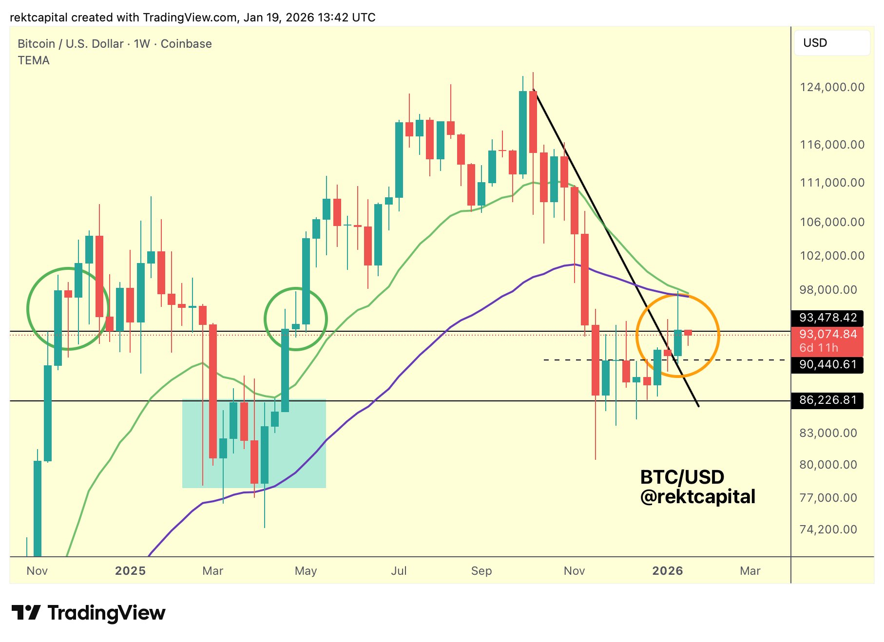 BTC/USD one-week chart. Source: Rekt Capital/X