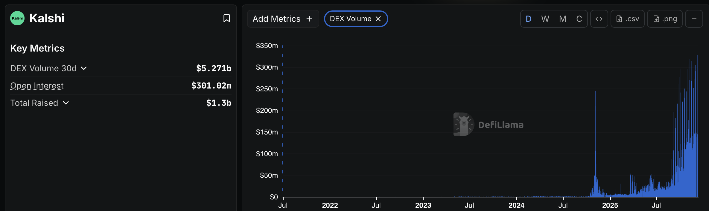 Prediction markets have emerged as a major trend in 2025. According to DefiLlama data, prediction market Kalshi has generated $5.27 billion in trading volume over the last 30 days, while blockchain-based Polymarket recorded just under $2 billion over the same time period.
