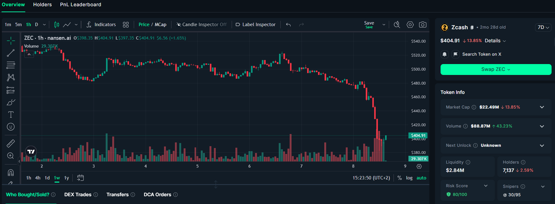 ZEC/USD, 1-week chart. Source: Nansen.ai