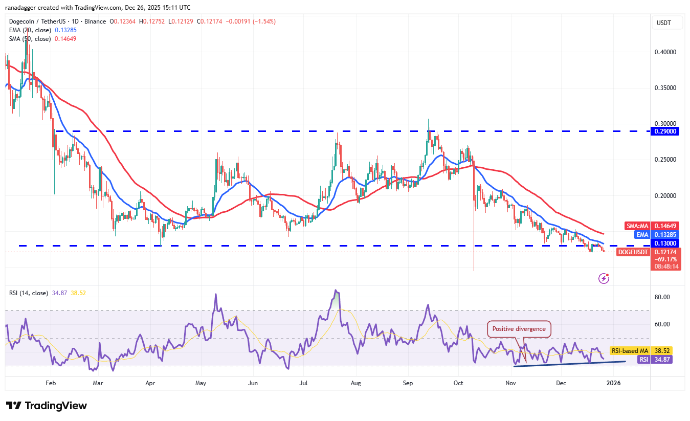 Dogecoin (DOGE) remains below the $0.13 level, signalling that the bears have continued to exert pressure.