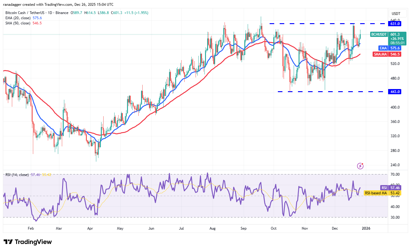 Bitcoin Cash (BCH) turned up from the 20-day EMA ($575) on Thursday, indicating positive sentiment.