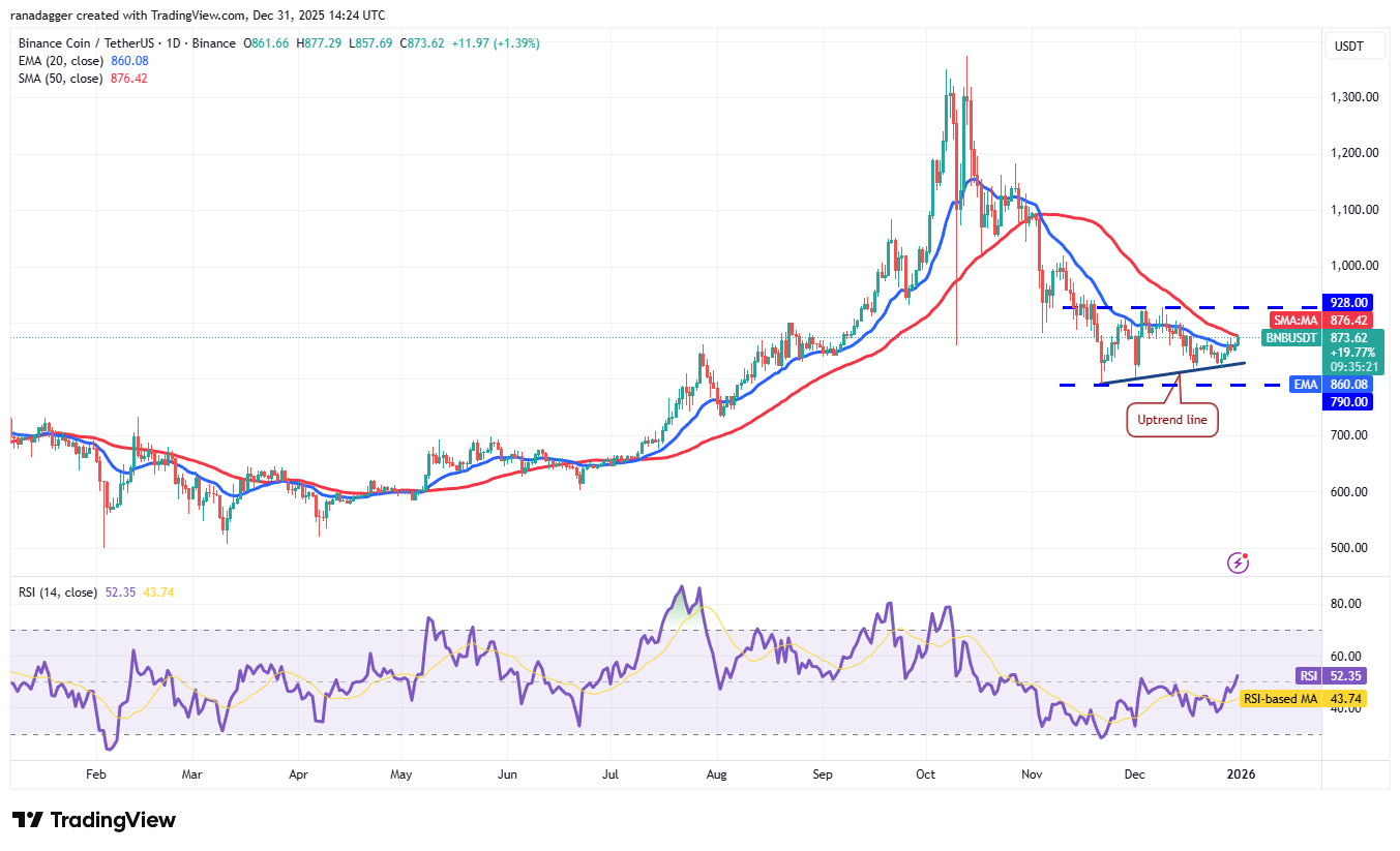 Buyers are attempting to drive BNB (BNB) above the 50-day SMA ($876), indicating demand at higher levels.