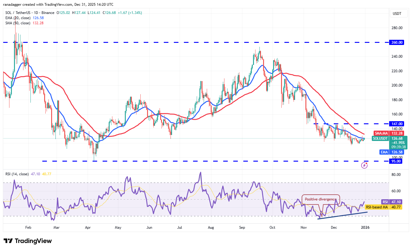 Solana (SOL) has been clinging to the 20-day EMA ($126) for the past few days, indicating that the bulls continue to exert pressure.