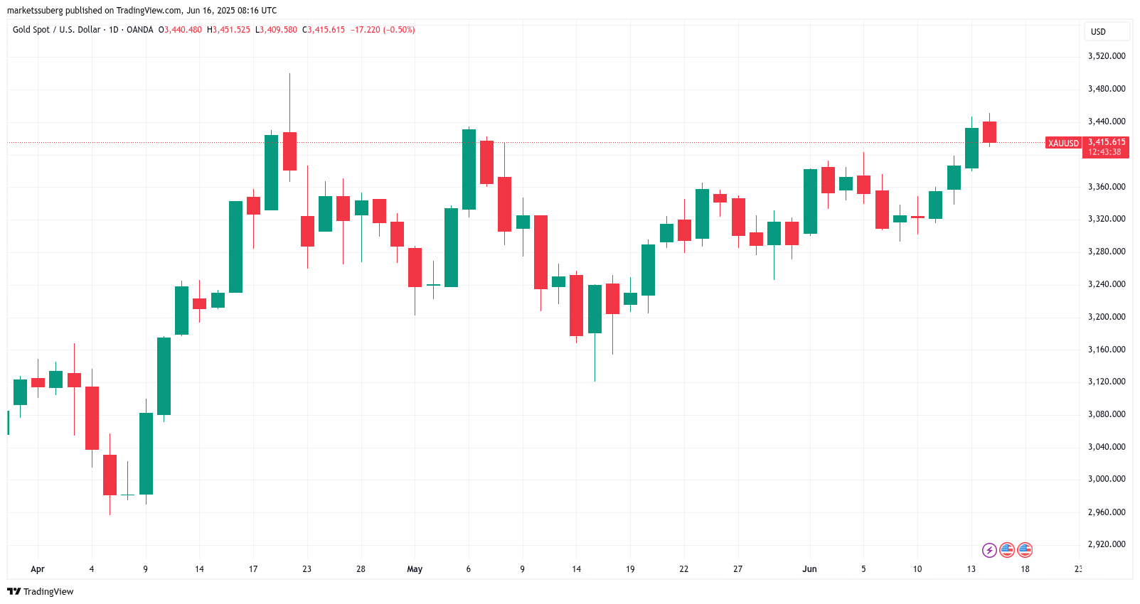 “While all of the headlines point to more escalation and a longer war, the stock market says the EXACT OPPOSITE. Equity markets have turned green, oil prices are now up just +0.5%, and gold is down just -0.5%,” it noted on June 16.