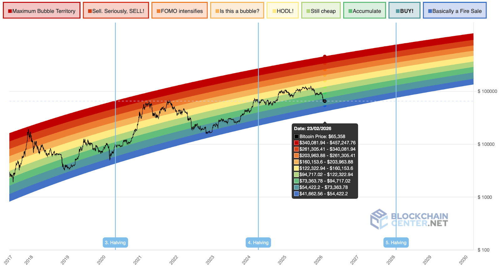 BTC rainbow chart. Source: BlockchainCenter