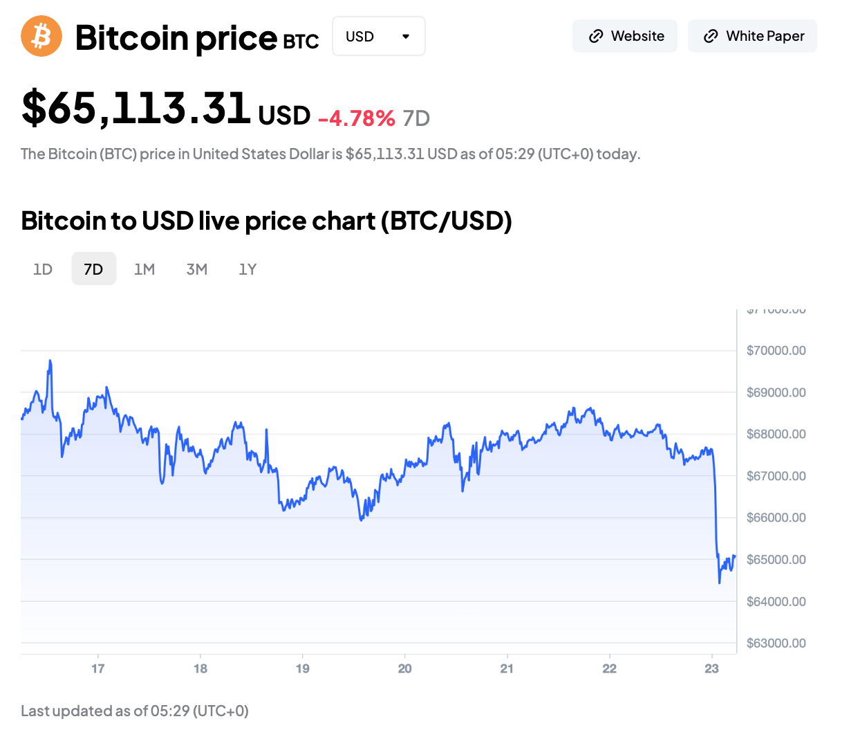 Bitcoin dips below $65K momentarily
