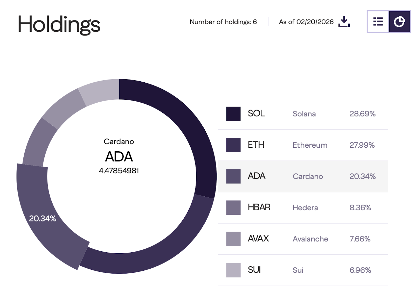 Then there’s the portfolio signal. Grayscale’s Smart Contract Fund disclosures show ADA as a top holding at 20.34% (as of today), placing it behind only the two largest positions in that basket.
