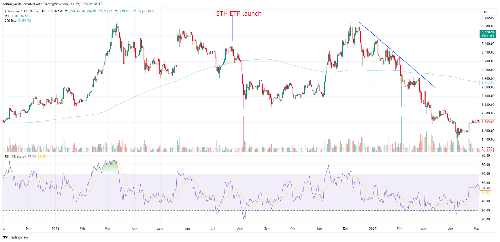 ETH/USD, all-time chart after spot ETH ETF launch. Source: Cointelegraph/TradingView