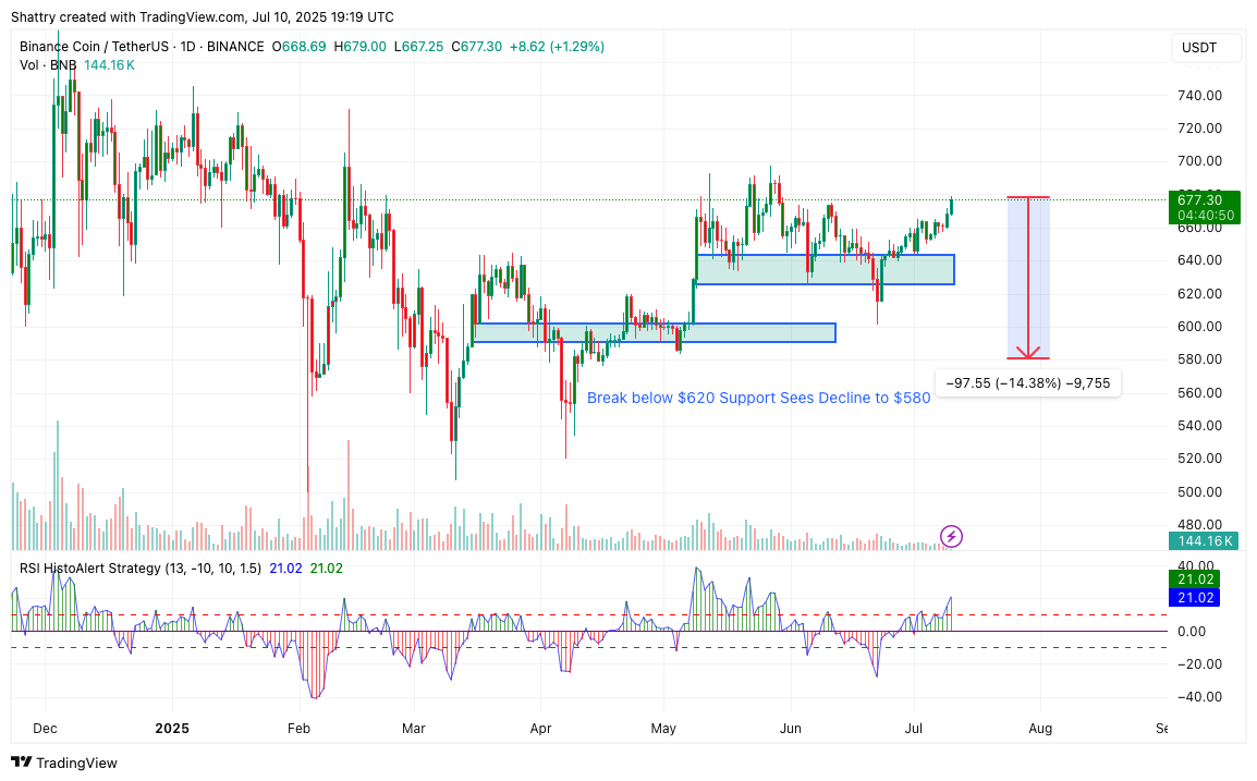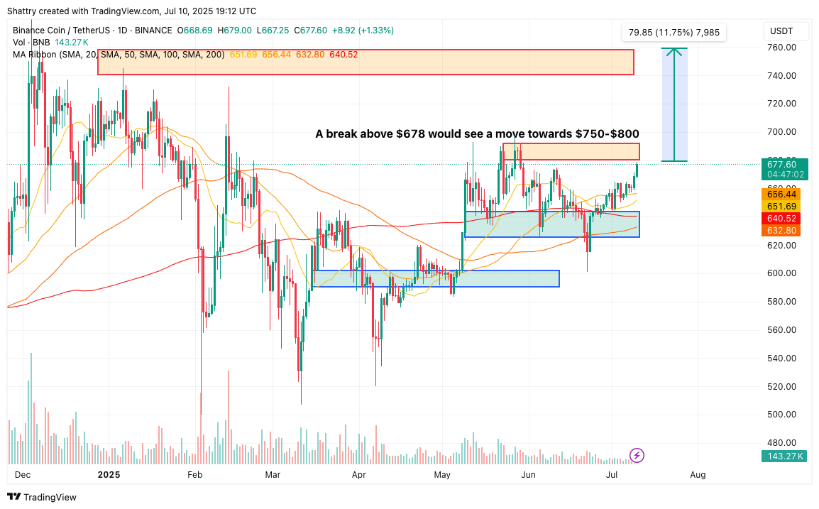 The symmetrical triangle breakout above $670 represents the definitive catalyst for BNB’s next major move toward $750-$800 targets.