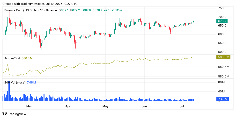 The symmetrical triangle breakout above $670 represents the definitive catalyst for BNB’s next major move toward $750-$800 targets.