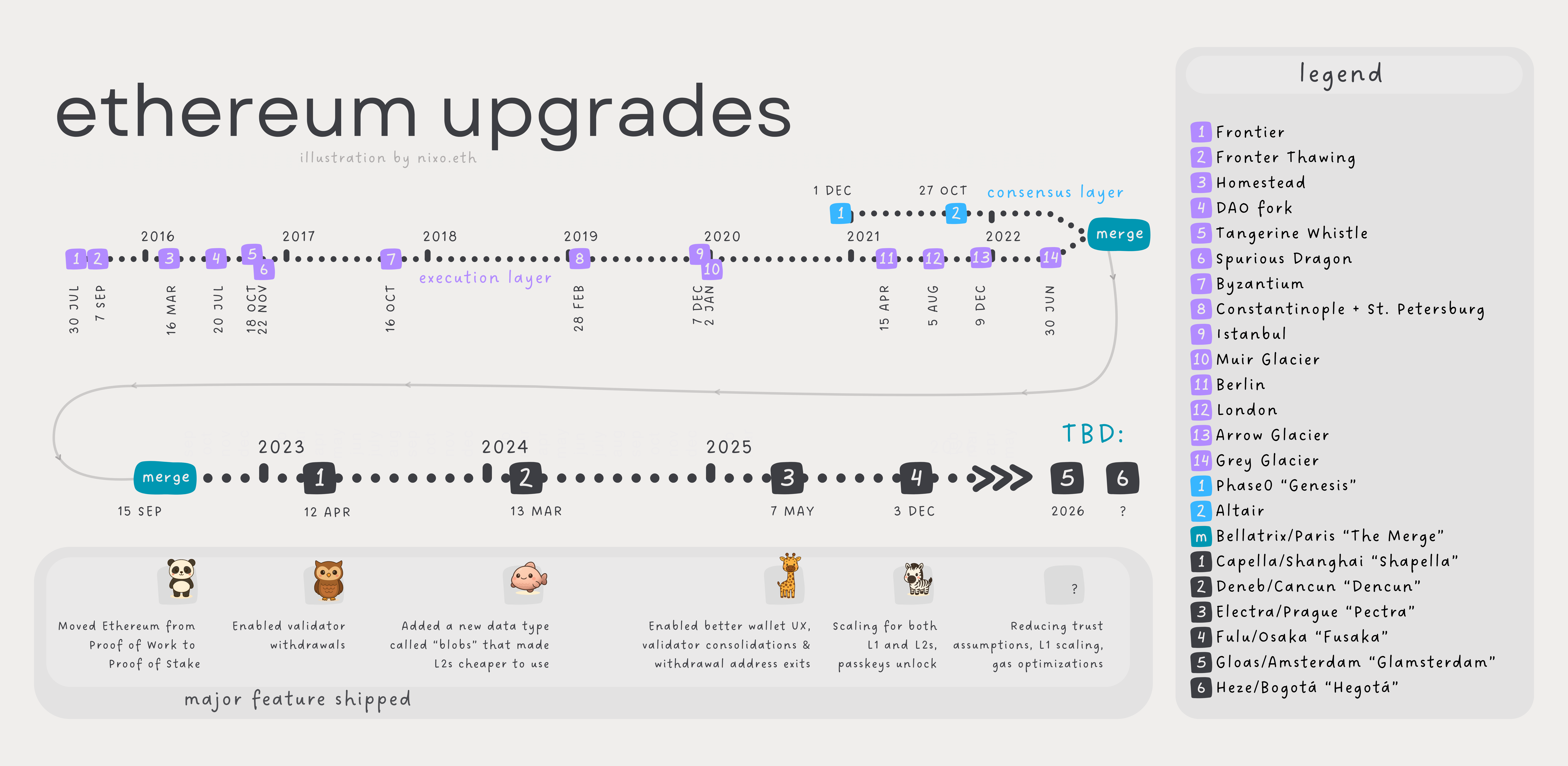The Fusaka upgrade shipped alongside the ability to adjust blob parameters independently from fork cycles. The next upgrade, Glamsterdam, is fully scoped and progress is underway while the major feature(s) of the following upgrade, Hegotá, are now being proposed, with a proposal deadline of February 4th.