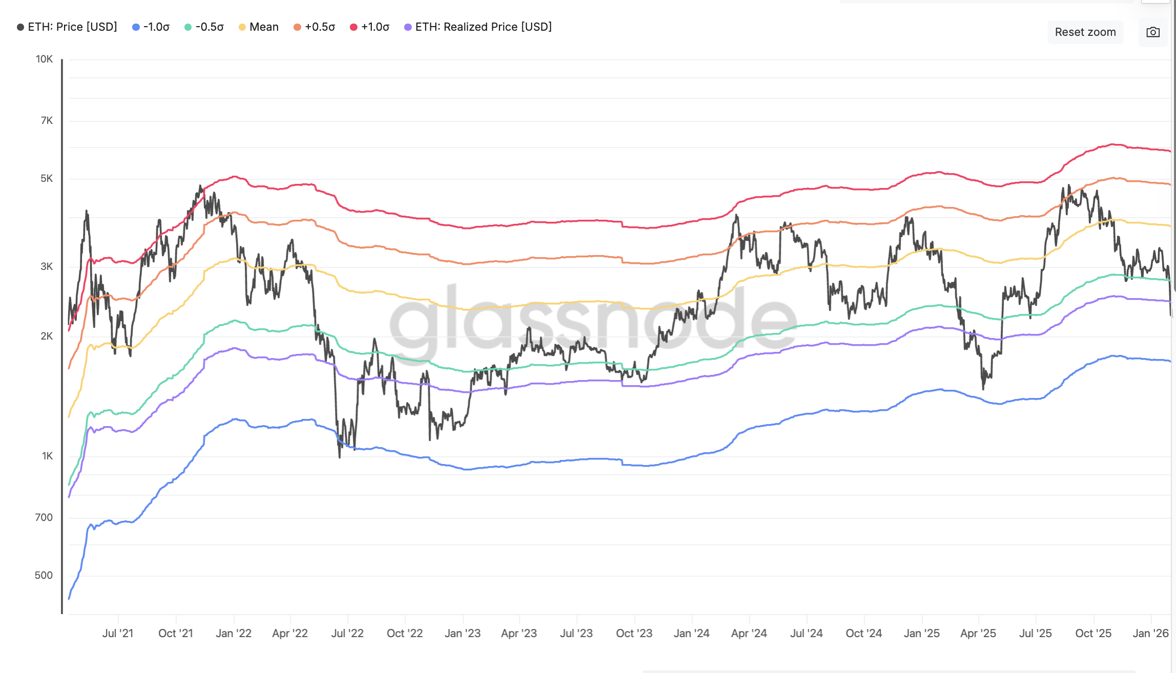 Ethereum’s technical downside target sat just below the lowest boundary of its MVRV extreme deviation pricing bands, currently at $1,725.