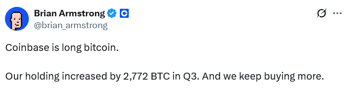Coinbase’s Bitcoin stash grew by 2,772 BTC during the third quarter as it doubled down on its Bitcoin strategy and continued work to become an “Everything Exchange.”