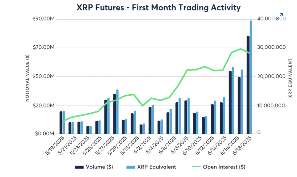 Since launching on May 19, both the standard and micro XRP futures contracts have amassed more than $542.8 million in notional trading volume, indicating robust institutional and retail appetite, according to the CME Group’s latest report.