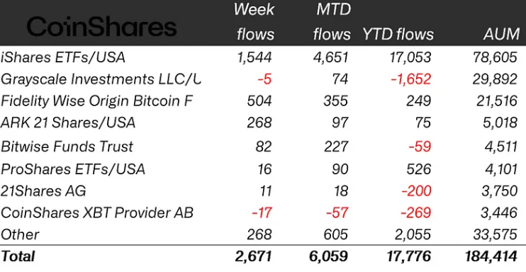 ProShares and Fidelity followed BlackRock with $526 million and $246 million in half-year inflows, while major competitors like Grayscale Investments only netted outflows of nearly $1.7 billion.