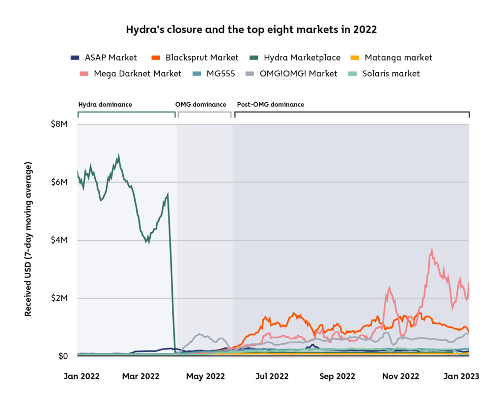 Hydra’s closure spurs the rise of alternative darknet markets. Source: Chainalysis
