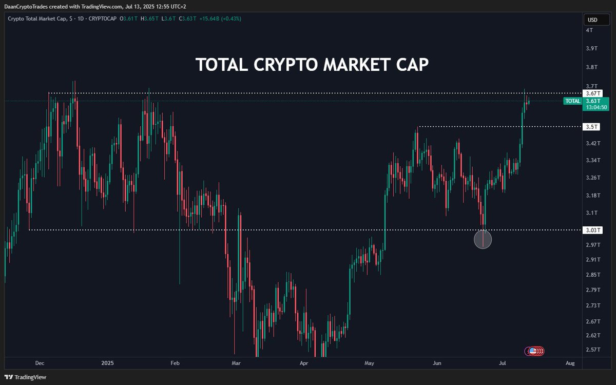 Earlier, Daan Crypto, a crypto trader, highlighted that a break above $3.7 trillion would “get momentum and risk appetite properly going again.”
