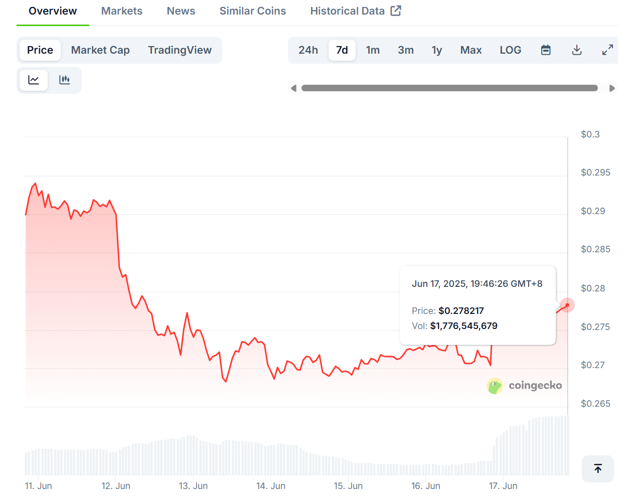 TRX’s price reacted positively to the news, with the price surging by 5%. Currently, Tron’s price is hovering above $0.2700, +2.1% from the previous month.