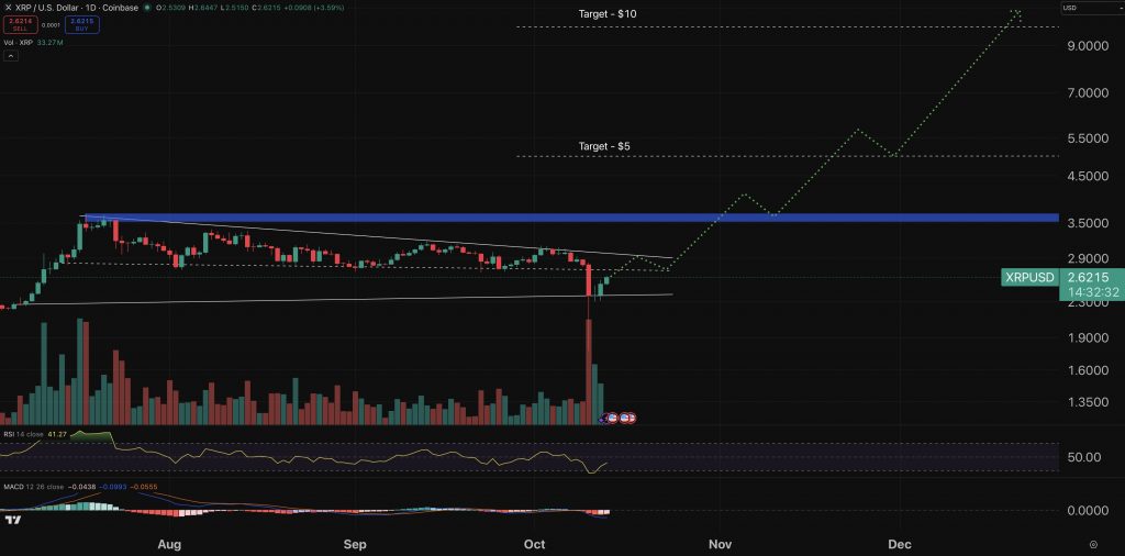 XRP has rebounded by 10% in the past 24 hours, although its current price of $2.63 represents an 11% drop in a week and a 15% decline in a month.