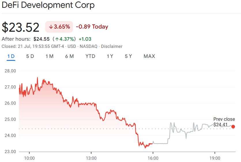 In a statement on Monday, DeFi Development Corp said its purchase of 141,383 Solana (SOL) between July 14 and July 20 had grown its treasury to 999,999.