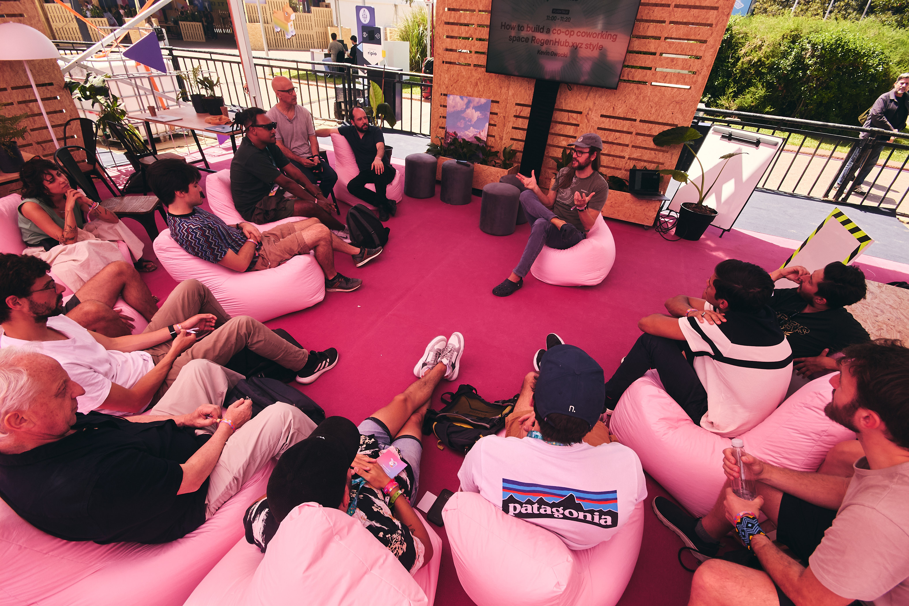 - 8 themed districts: DeFi, Privacy, L2s, Decentralized Social, Hardware & Wallets, AI, Gaming, and Art