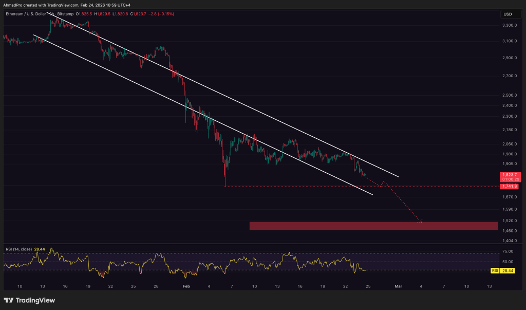 Ethereum’s structure has clearly weakened after losing the $2,000 psychological level.