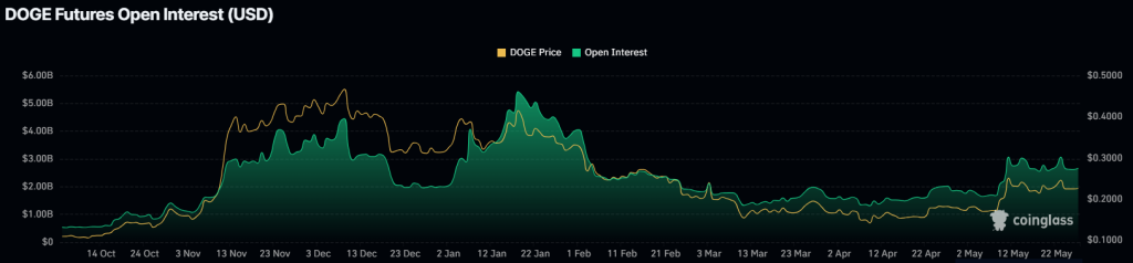 While still far from the post-inauguration rally’s $5.4 billion peak, DOGE is currently maintaining open interest at February levels at $2.7 billion according to CoinGlass Data.