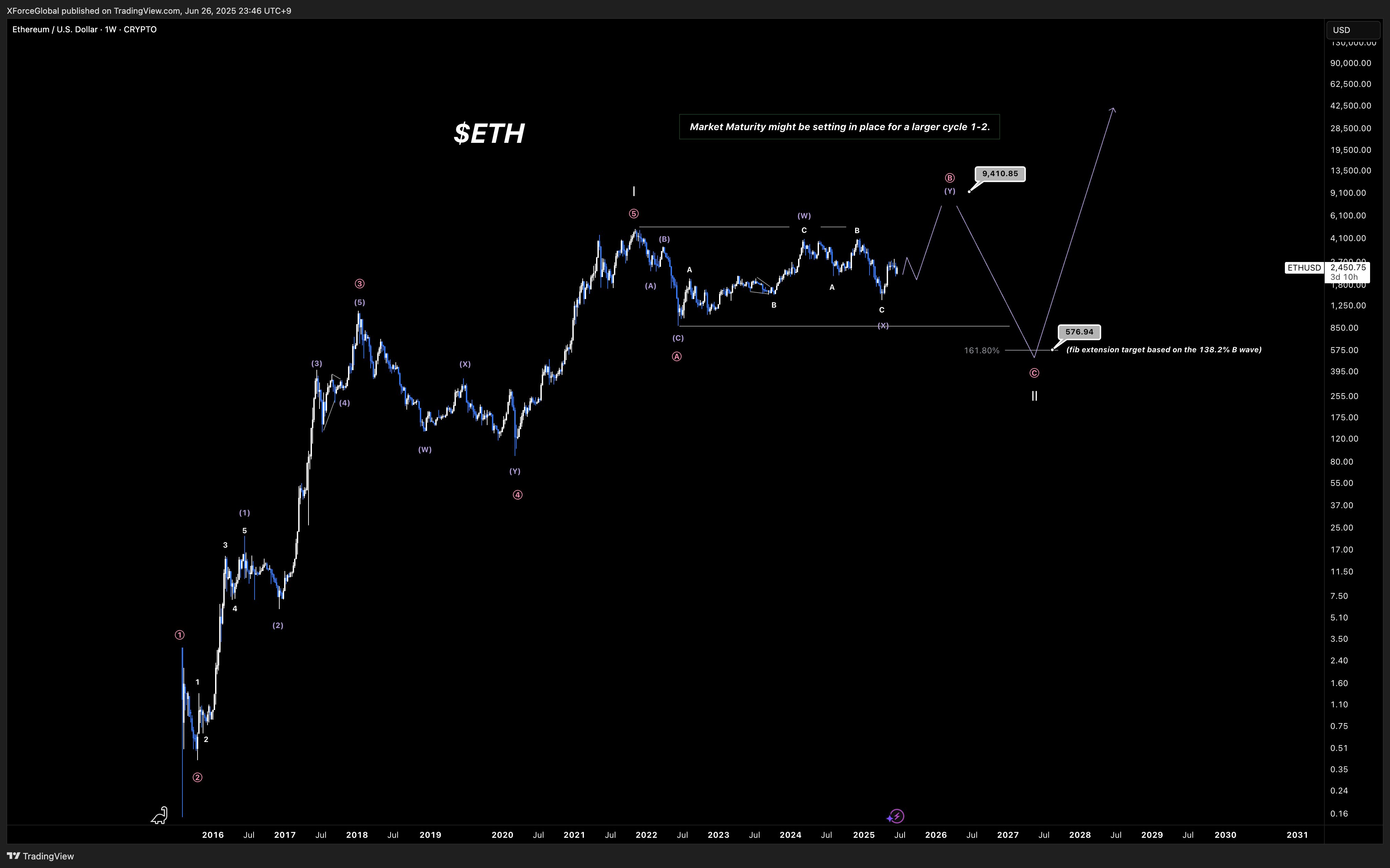 One perspective comes from Elliott Wave analysis, a model positing that market prices move in five recurring, psychology-driven wave patterns. According to the XForceGlobal analysis posted a month ago (already partly validated, though a bit ahead of the forecast), ETH appears to be advancing through a third impulsive wave. If the pattern holds, this phase could peak around $9,000 by early 2026, provided macro conditions remain supportive. That would mark Ethereum’s next major breakout before the onset of the next market downturn.