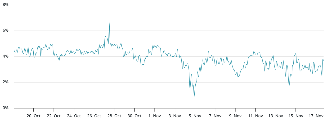 Demand for bullish ETH leverage has stayed muted for a month, with the futures premium stuck under the 5% neutral level. Part of this hesitation comes from how market stress affects companies building ETH reserves, including Bitmine Immersion (BMNR US), SharpLink Gaming (SBET US) and The Ether Machine (ETHM US).