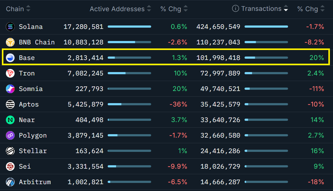 Still, the shift of activity toward layer-2s is far from a threat. The rise of Ethereum’s scaling ecosystem has strengthened its lead in Real World Asset (RWA) tokenization and in decentralized stablecoin systems such as Sky, formerly known as MakerDAO. Base alone processed nearly 102 million transactions in the past seven days, a figure comparable to networks with many more users and deposits, such as Solana.