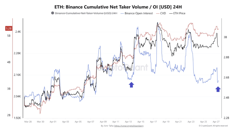 On Binance, Ether’s open interest (OI) has dropped to $2.58 billion, matching levels seen when ETH traded near $2,200 earlier this month. The decline points to a reset in leverage following the recent positioning buildup.