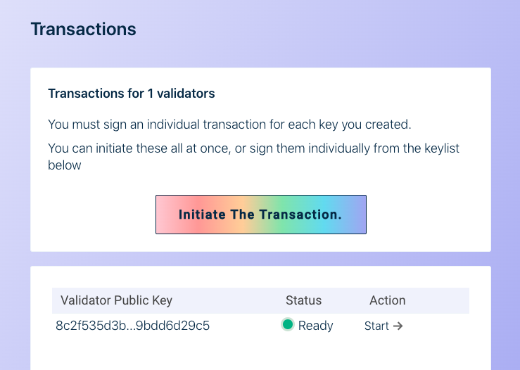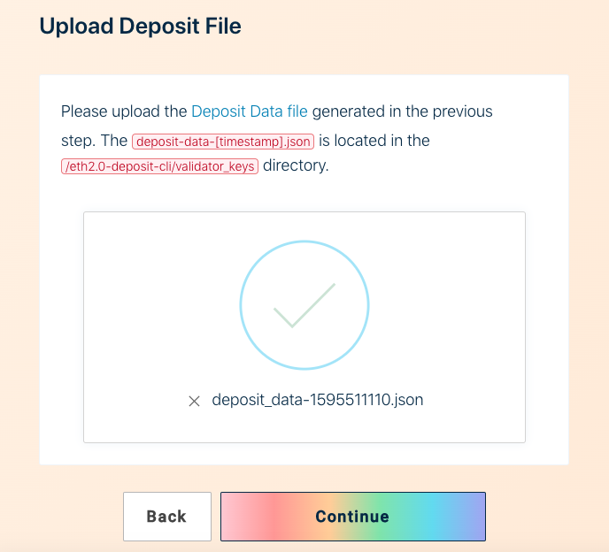 Once you’ve safely generated your keys, we guide you through how you to upload your public keys online, where they will then be verified and sent off to the deposit contract.