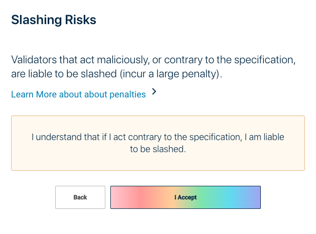 With respect to risk, we want you to understand what your slashing risks are, as well as the inherent risks involved with being an early adopter.