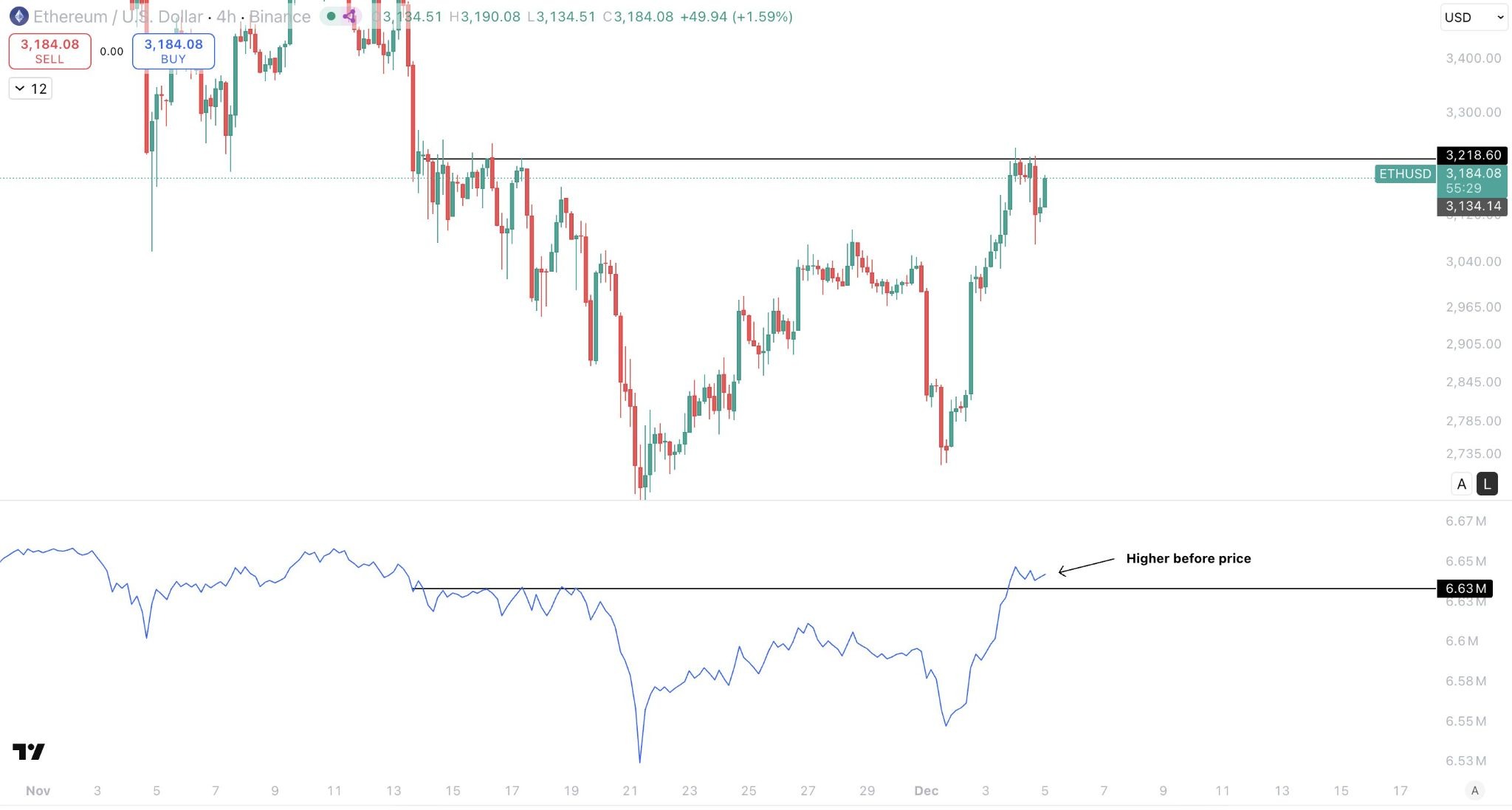 However, the price was rejected, which is a classic divergence signaling hidden buying strength that often precedes upside moves.