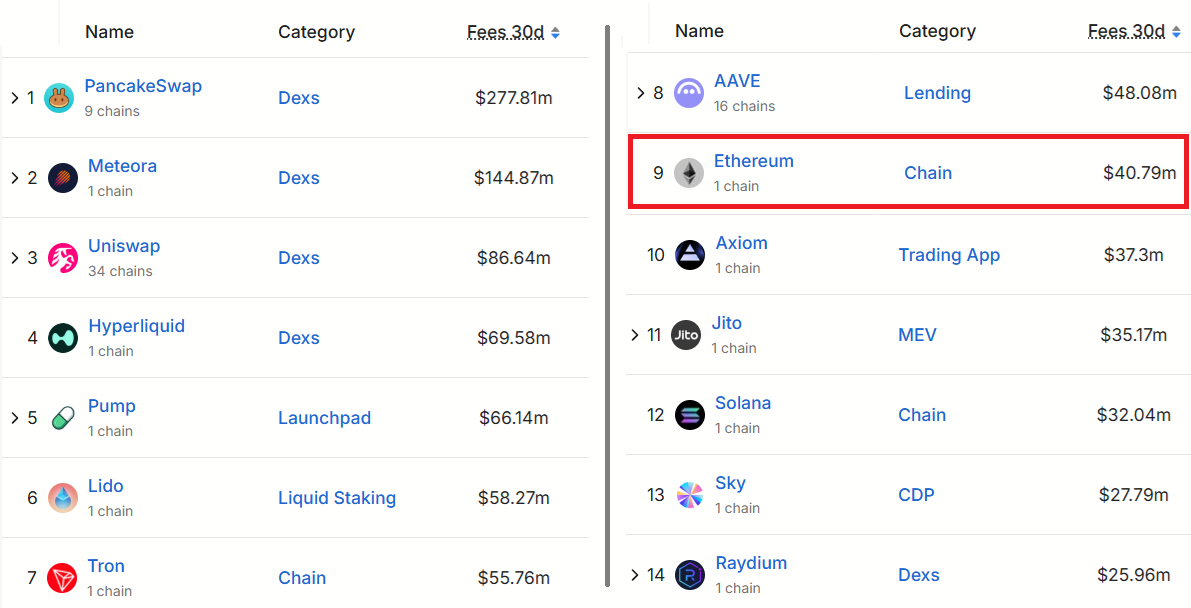 More than 20 weeks have passed since Ether last traded above $3,000, leading to gradual erosion in trader confidence. The absence of renewed optimism also stems from intensifying competition in decentralized application (DApp) activity, particularly from Solana and BNB Chain.