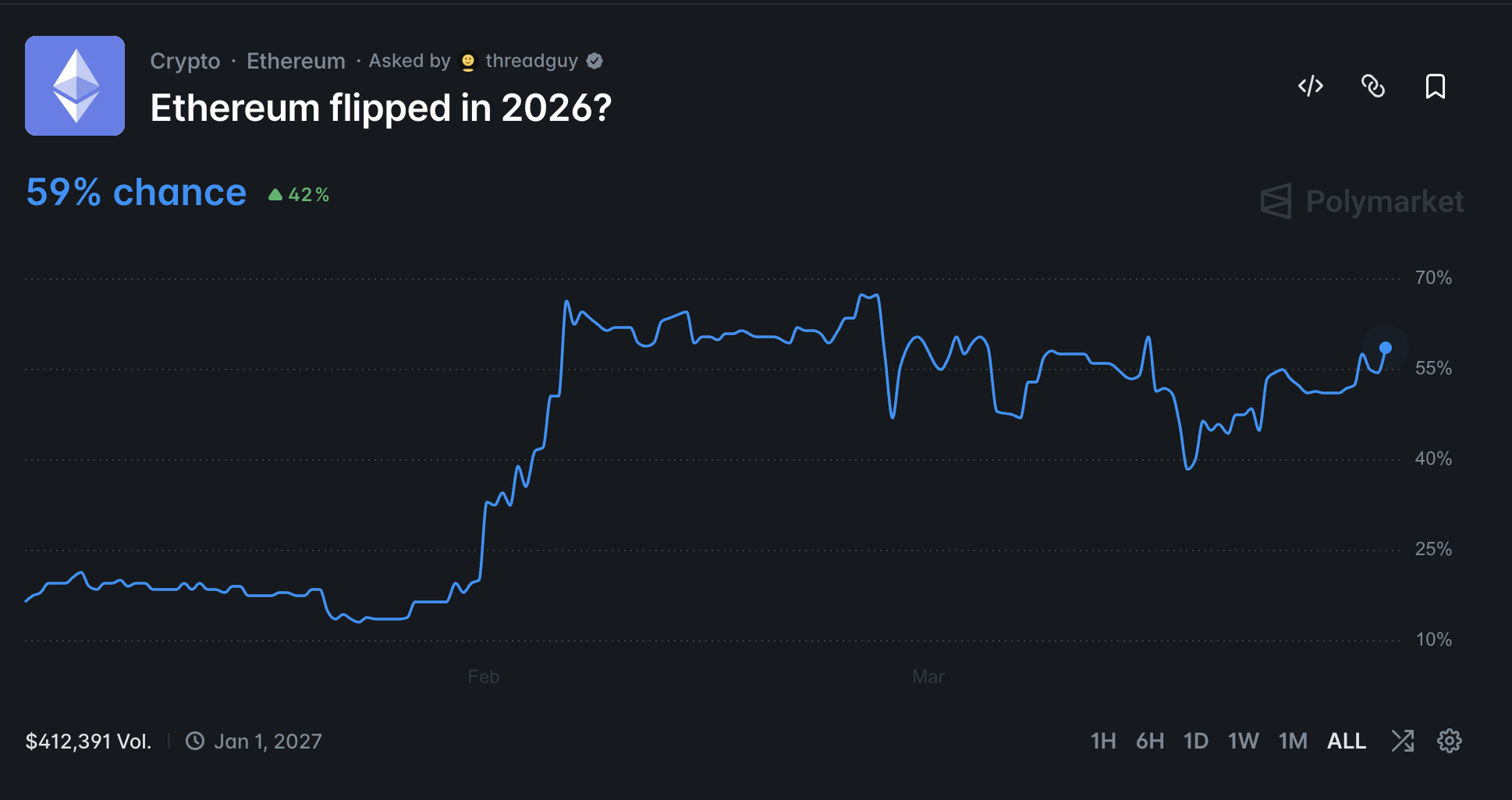 Ethereum flipped in 2026 contract. Source: Polymarket