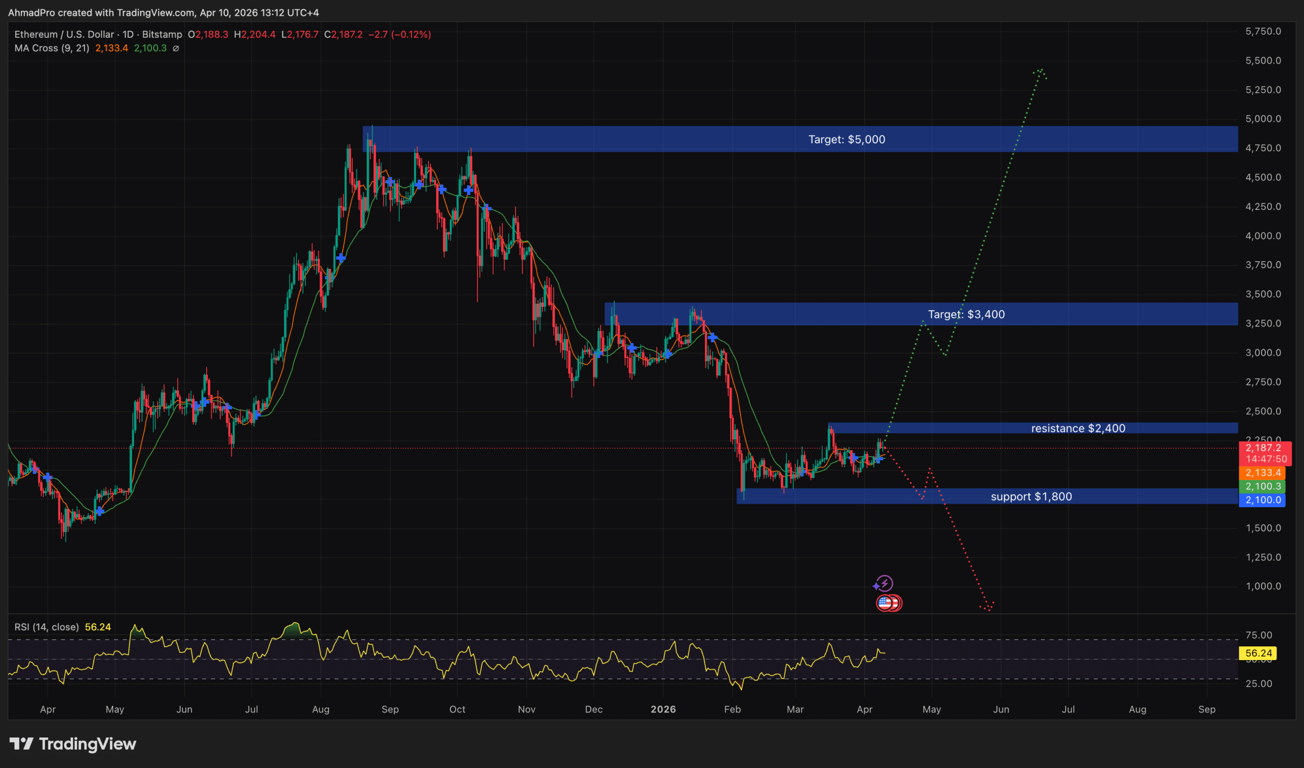 ETH is sitting right at a turning point, because reclaiming $2,400 on a weekly close is what shifts momentum, and once that happens, short covering can kick in fast and push price higher, with $2,800 as the next key zone before any bigger move starts coming into play.