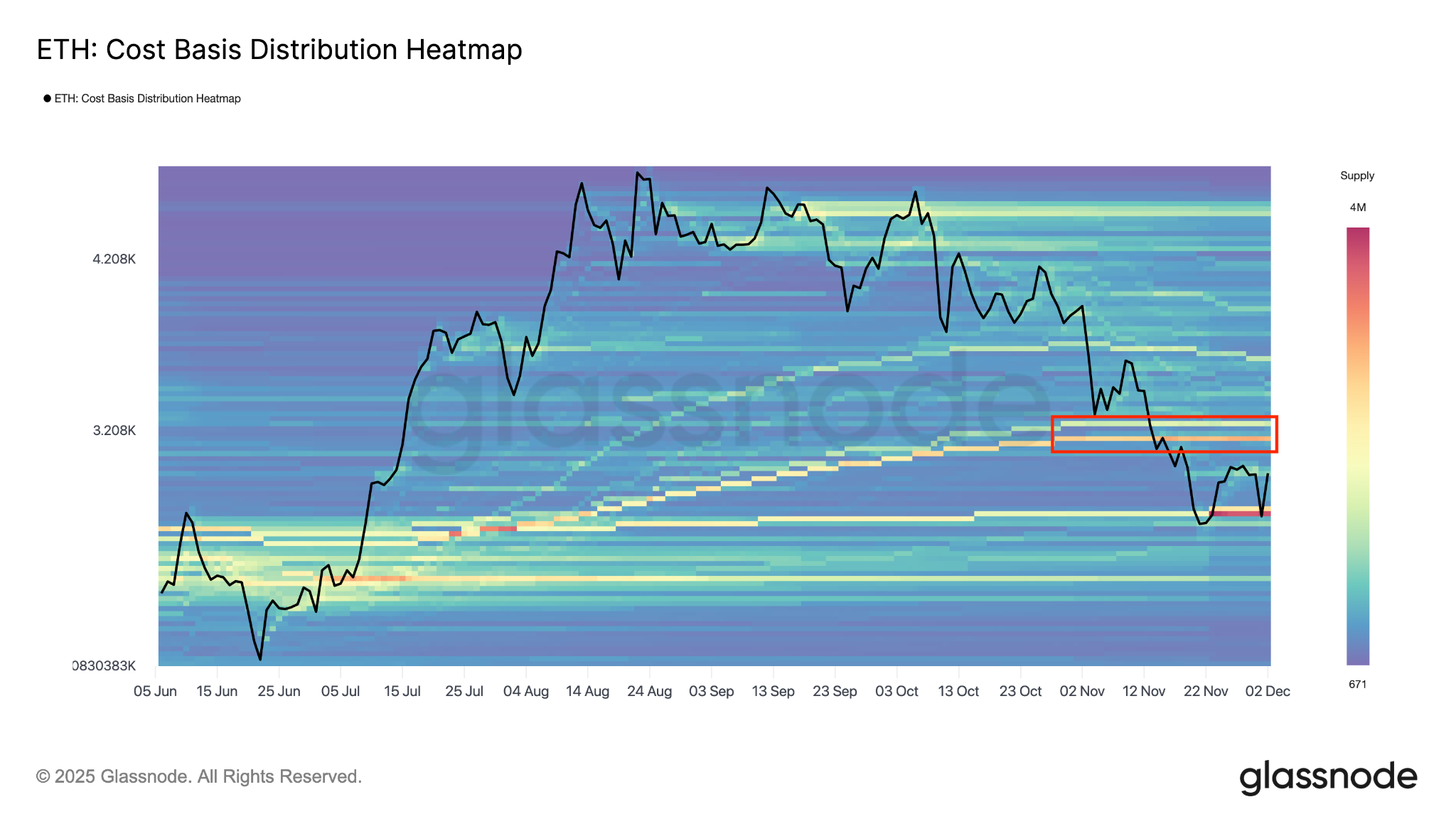 This is where investors acquired about 5.1 million ETH, according to Glassnode’s cost basis distribution heatmap.