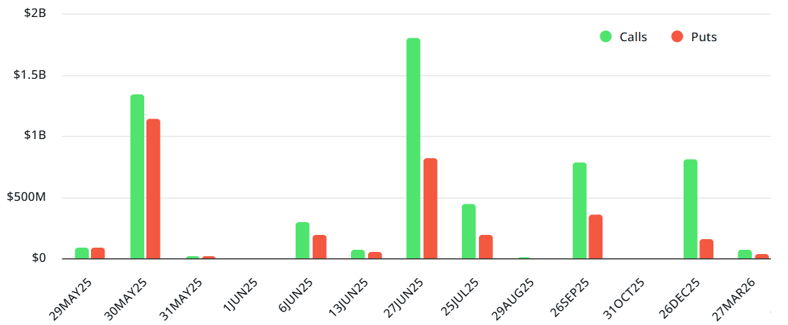 The $1.1 billion in put (sell) options were clearly caught off guard, as 97% were set at $2,600 or lower. These contracts will expire worthless if ETH holds above that level at 8:00 am UTC on May 30. While this imbalance is unusual, a similar outcome could affect the overly optimistic call options with strike prices at $2,800 and above if ETH remains near current levels.