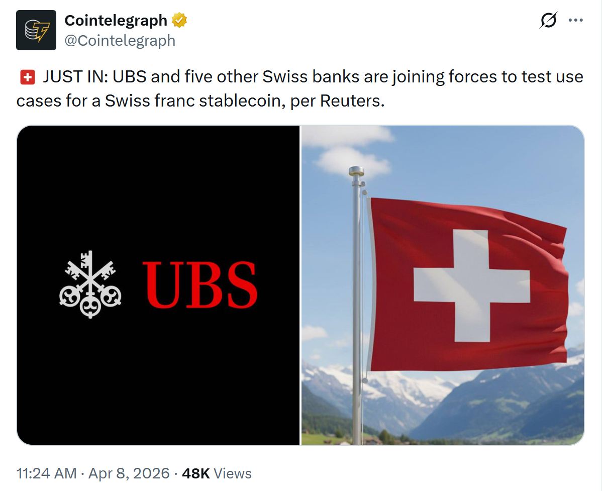 A consortium of banks, including ING, UniCredit and BNP Paribas is preparing a Swiss-franc stablecoin for the second half of 2026.