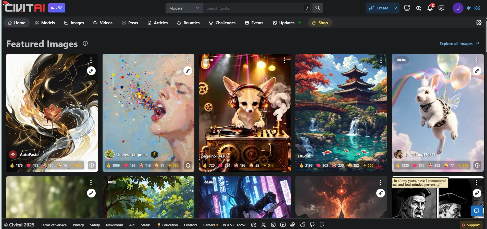 Civitai is the definitive repository for anyone running image and video generation locally. The community-driven platform hosts thousands of checkpoints, LoRAs, embeddings, textual inversions and even workflows—each tagged, searchable, and accompanied by example outputs with the exact prompts and settings used.
