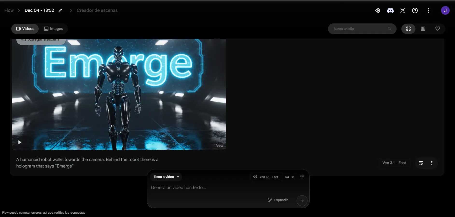 Google Flow powered by Veo 3.1 is Google’s bet at using AI in professional environments. Start and End Frame Control ensures narrative coherence across shots, while Multi-Reference Mode chains connected scenes for longer productions. Native audio generation delivers synchronized music, sound effects, and dialogue—addressing the biggest gap in previous AI video tools.