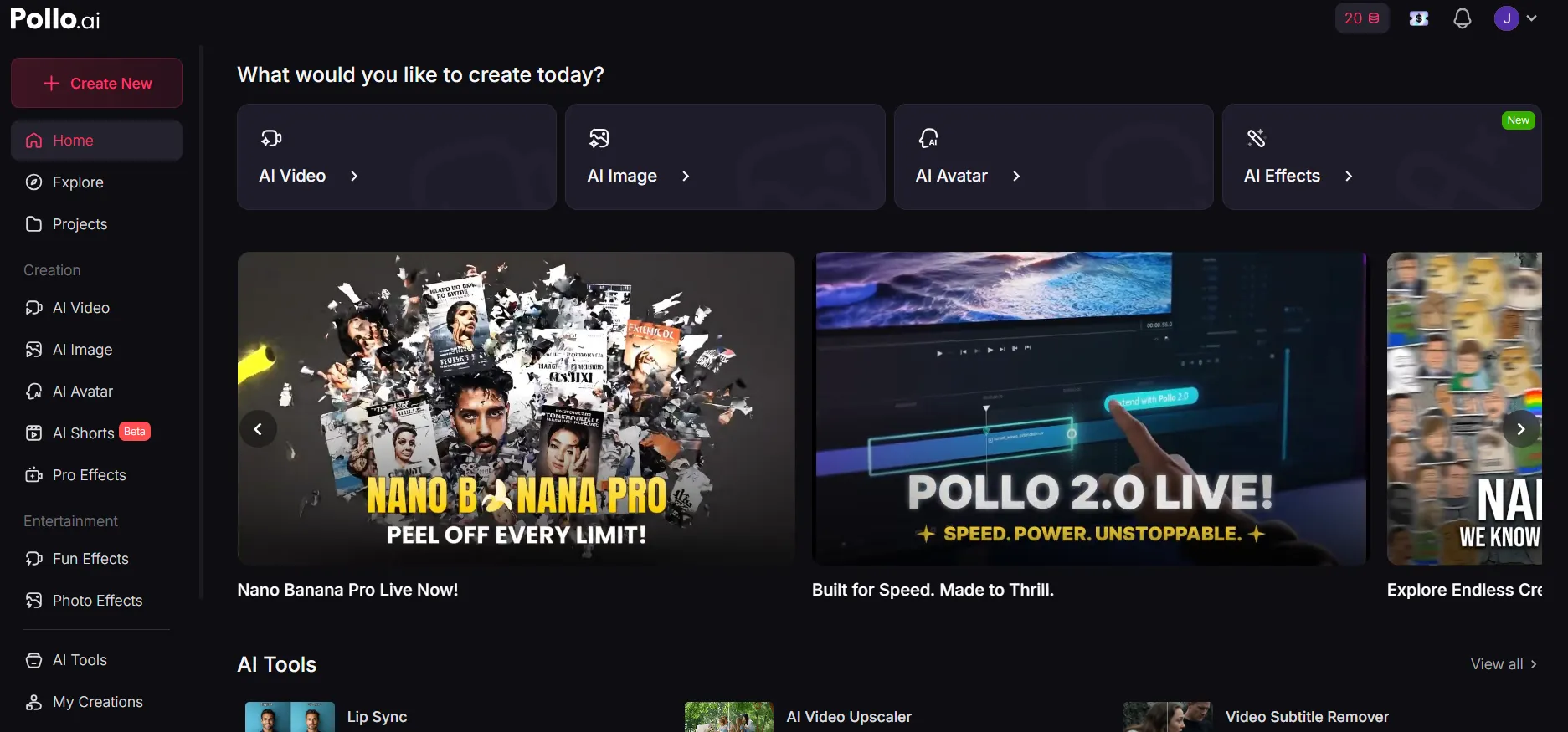 Pollo AI is another good option. The platform bundles access to Veo 3.1, Sora 2, Kling AI, Runway, Hailuo, and its own Pollo 2.0 model—all top-tier video generators in one interface. Image generation spans Nano Banana Pro, Midjourney, Flux Kontext, and more.