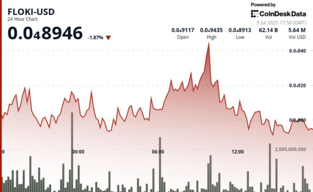 Despite intraday weakness and a late-session fade, FLOKI remained above session lows. A failed recovery attempt around $0.00009016 confirmed that sellers continue to dominate at higher levels, but the token’s ability to hold above $0.00008900 may suggest underlying support near this area as the market digests the implications of the Webull listing.