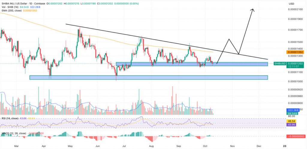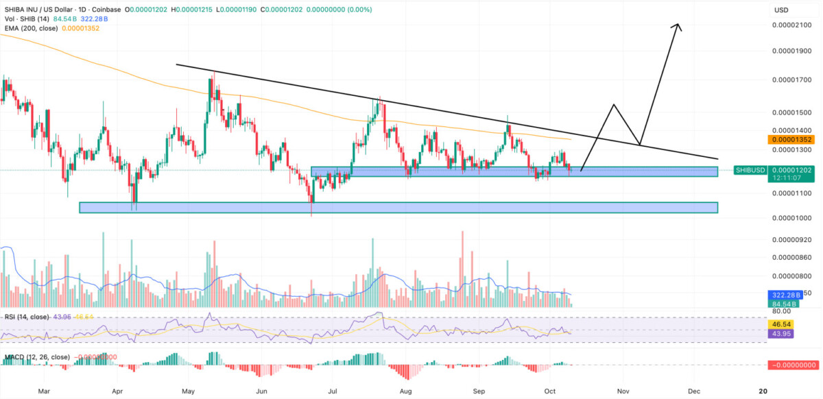 Shiba Inu (SHIB) remains to show tenacity, staying firm at $0.000012 and signaling a possible rebound towards key resistance and the 200-day EMA. With volume gradually relaxing but ETF speculation increasing, institutional demand for SHIB is slowly building.