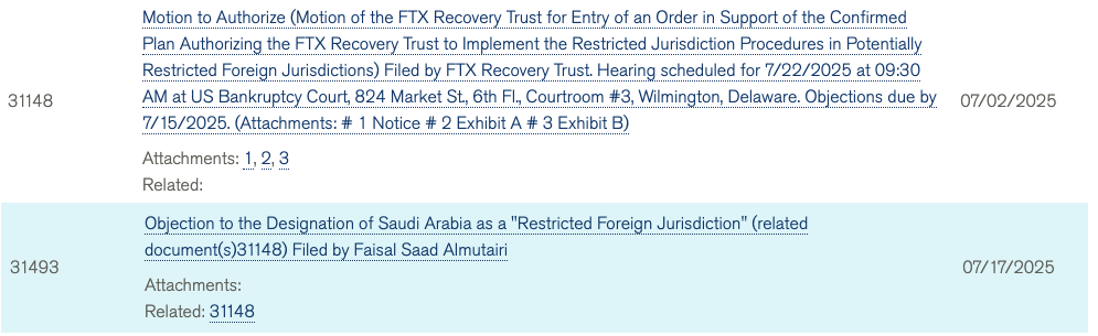 “By categorizing claimants in certain countries as ineligible for distributions, the plan discriminates unfairly. My country does not prohibit cryptocurrency ownership or trading, and regulatory fears are speculative and not a valid legal basis for denying recovery,” Almutairi’s objection reads.
