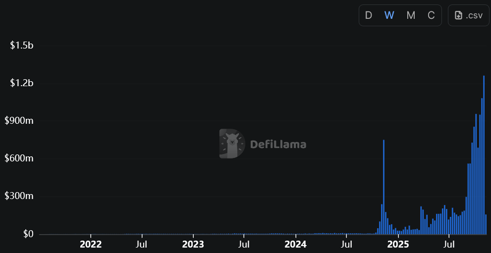 Trading volume on predictions platform Kalshi has been seeing new highs almost every week since mid-October, with the latest $1.2 billion across Oct. 27 and Nov. 2 topping the previous record of nearly $1.01 billion the week before.