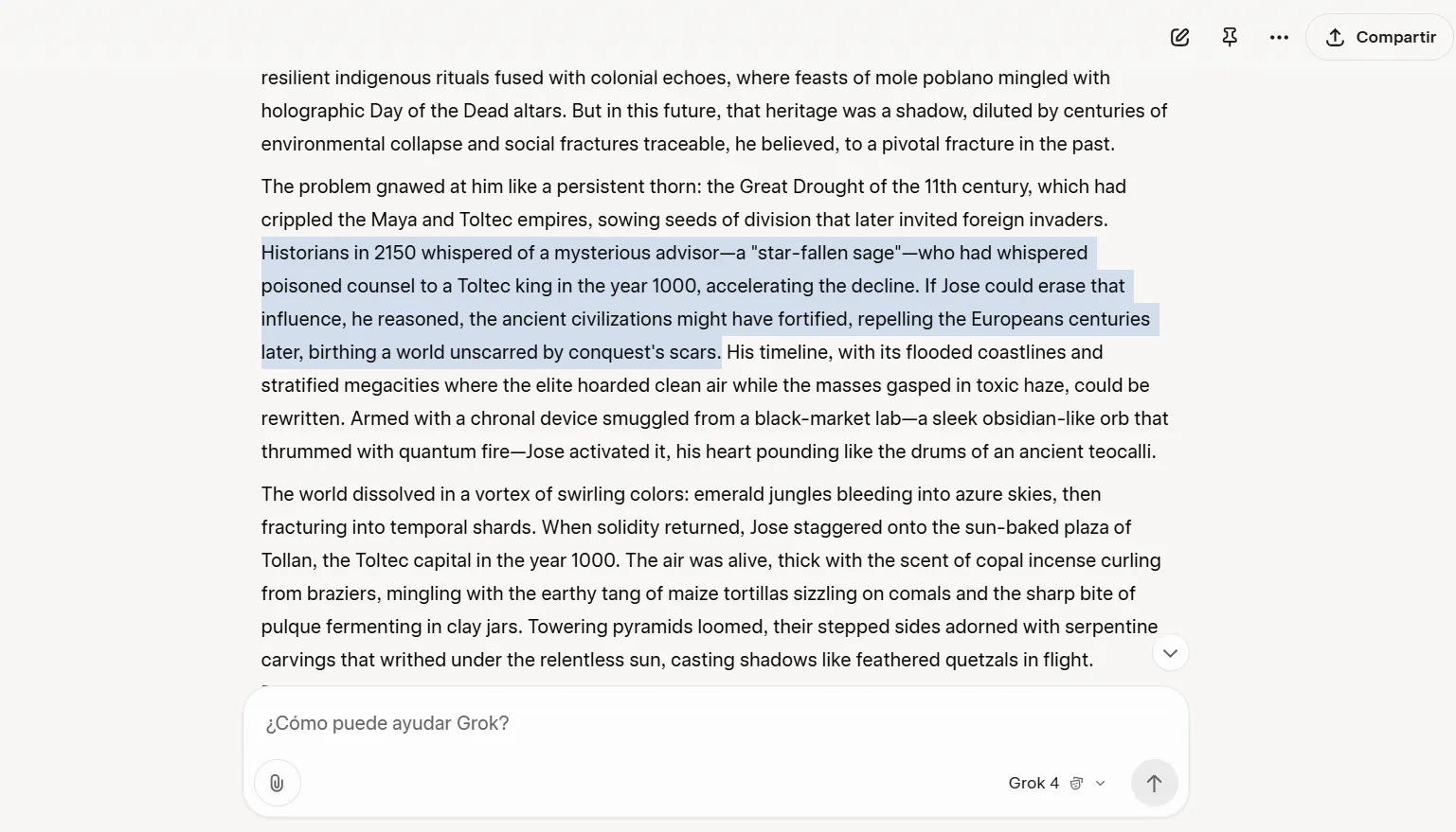 But other than that, the disconnect between structural competence and narrative quality suggests Grok 4 might work best as a narrative tool to set up plots and frame a good story, rather than a prose generator.